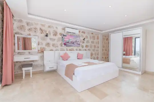 Villamız Kaş/Kalkan tatil beldesinin sakin konumlarından İslamlar mevkiinde yer almaktadır. Son yılların villa tatili gözdesi olmuş, etrafı ormanlarla çevrili, merkeze araçla 5 dakikada ulaşabildiğiniz konumu ve muhteşem mazarasıyla konaklayanlarına lüks bir tatil imkanı sağlamaktadır. Villa Narin 2, 4 kişilik kapasiteye sahip villada 2 yatak odası yer alıyor. Villanın her odasında da birer banyosu mevcut. Açık mutfağı ve kendine ait bahçesindevar. Mutfağında bulaşık makinesi, buzdolabı, ankastre fırın, ve mutfakta ihtiyaç olan hemen hemen bütün gereçler bulunuyor. Villanın bahçesinde özel havuzu mevcut. Barbekü, masa, sandalyeler, şezlonglar ve şemsiyeler bahçe keyfini sınırsız yaşamanıza imkan tanıyor. Salonunda oturma grubu, televizyon, eşyalar bulunurken, tüm odalar için ayrı klima imkanı var.