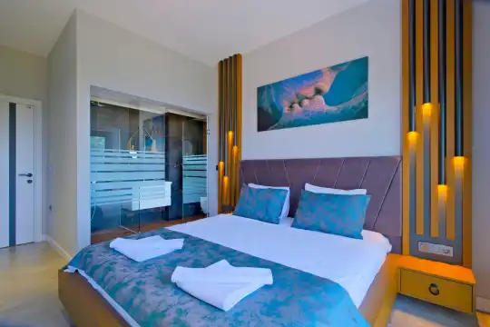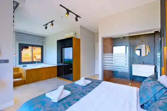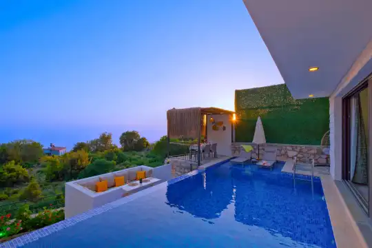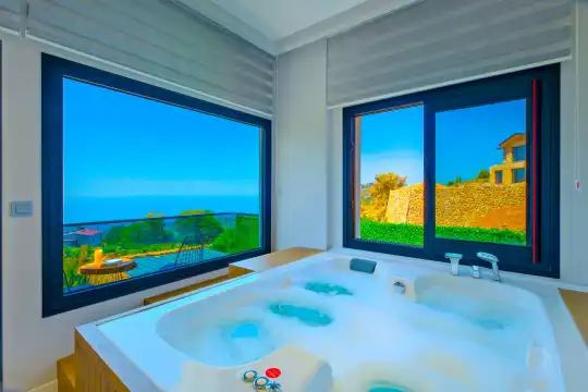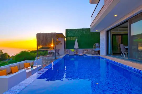 Muhteşem bir deniz manzarasına sahip olan villamız havuz terasının korunaklı yapısından dolayı muhafazakar aileler ve balayı çiftleri için oldukça idealdir. Sevdiklerinizle birlikte günbatımına karşı içeceklerinizi yudumlayıp manzaranın tadını çıkarabilirsiniz. Villamızda bulunan jakuzi ise rahatlayıp tüm yılın yorgunluğunu üzerinizden atmanıza yardımcı olacaktır.