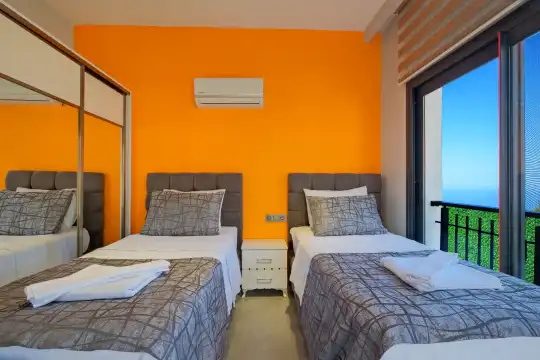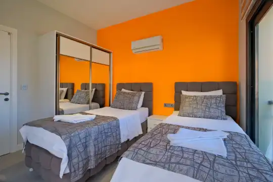 Villa Nil 4 kişilik kapasiteye sahip villada 2 yatak odası yer alıyor. Villanın her iki odasında da birer banyosu ve jakuzisi mevcut. Açık mutfağı ve kendine ait bahçesinde bir havuzu var. Mutfağında bulaşık makinesi, buzdolabı, ankastre fırın, tost makinesi ve mutfakta ihtiyaç olan hemen hemen bütün gereçler bulunuyor. Villanın bahçesinde özel havuzu mevcut. Barbekü, masa, sandalyeler, şezlonglar ve şemsiyeler bahçe keyfini sınırsız yaşamanıza imkan tanıyor. Salonunda oturma grubu, televizyon, eşyalar bulunurken, tüm odalar için ayrı klima imkanı var.