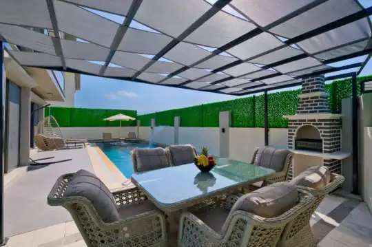 Fethiye Seydikemer mahllesinde konumlanan villamız, huzurlu bir konumu olan şehrin kargaşasından uzakta keyifli bir tatil yapabilmeniz için havuz bahçe alanında şezlong takımları, bahçe oturma grubu, barbekü, salıncak ve yeşil alan bulunmakta olup değerli misafirlerimize ev sahipliği yapmaya hazırdır. Seydikemer bölgesinde konumlanan Villa Nilda 2024 yılında hizmete açılmış olup, 150 m2 brüt alanda, 3 yatak odası ve 6 kişilik konaklama kapasitesi ile kalabalık aile ve arkadaş gruplarına uygun, lüks tatil sevenlere hitap eden bir villadır.
