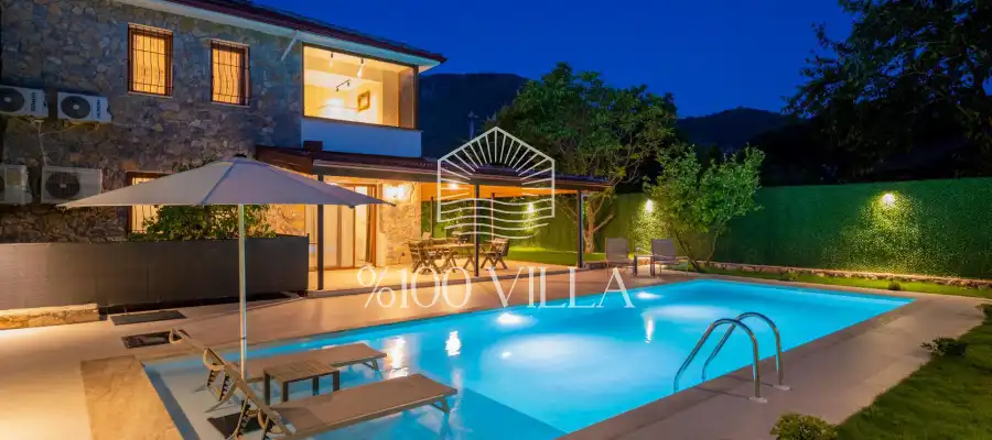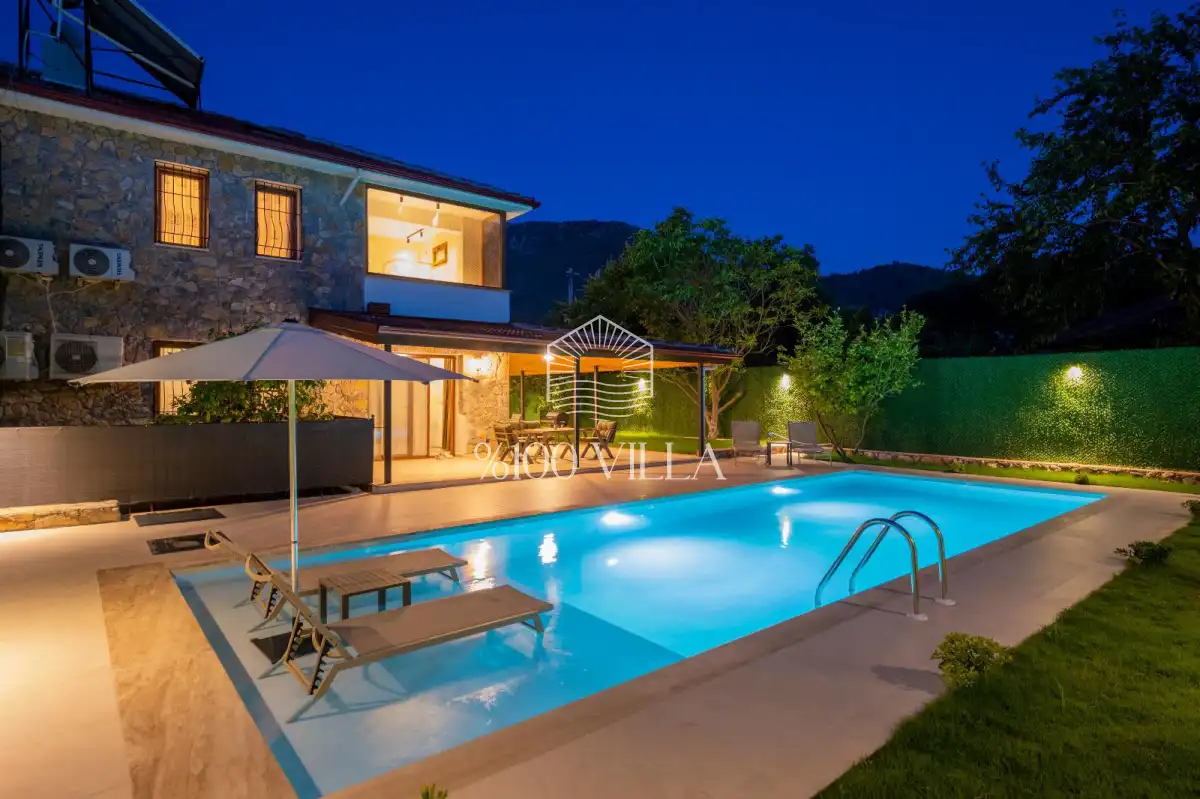 Fethiye Kayaköy bölgesinde yer alan bu villa, 2 yatak odasıyla 4 kişiye kadar konforlu bir konaklama imkânı sunmaktadır. Tamamen korunaklı havuz alanı ile özellikle balayı çiftleri için ideal bir tercih oluşturmaktadır.