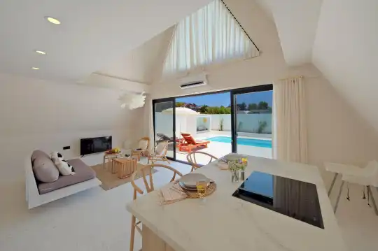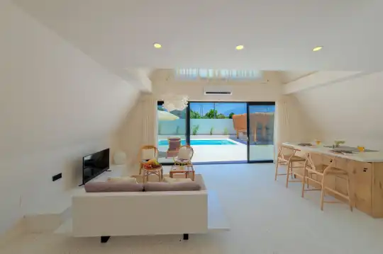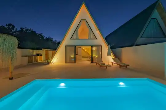 Kuş cıvıltıları eşliğinde uyanıp yemyeşil çam ormanlarına karşı keyifli bir kahvaltı yapma fırsatı sunan bu villa, ilk andan itibaren doğru bir seçim yaptığınızı hissettirir. Villanın donanımı ve konforu, tatil beklentilerinizi fazlasıyla karşılayacak şekilde düzenlenmiştir.