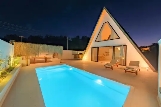 Kuş cıvıltıları eşliğinde uyanıp yemyeşil çam ormanlarına karşı keyifli bir kahvaltı yapma fırsatı sunan bu villa, ilk andan itibaren doğru bir seçim yaptığınızı hissettirir. Villanın donanımı ve konforu, tatil beklentilerinizi fazlasıyla karşılayacak şekilde düzenlenmiştir.