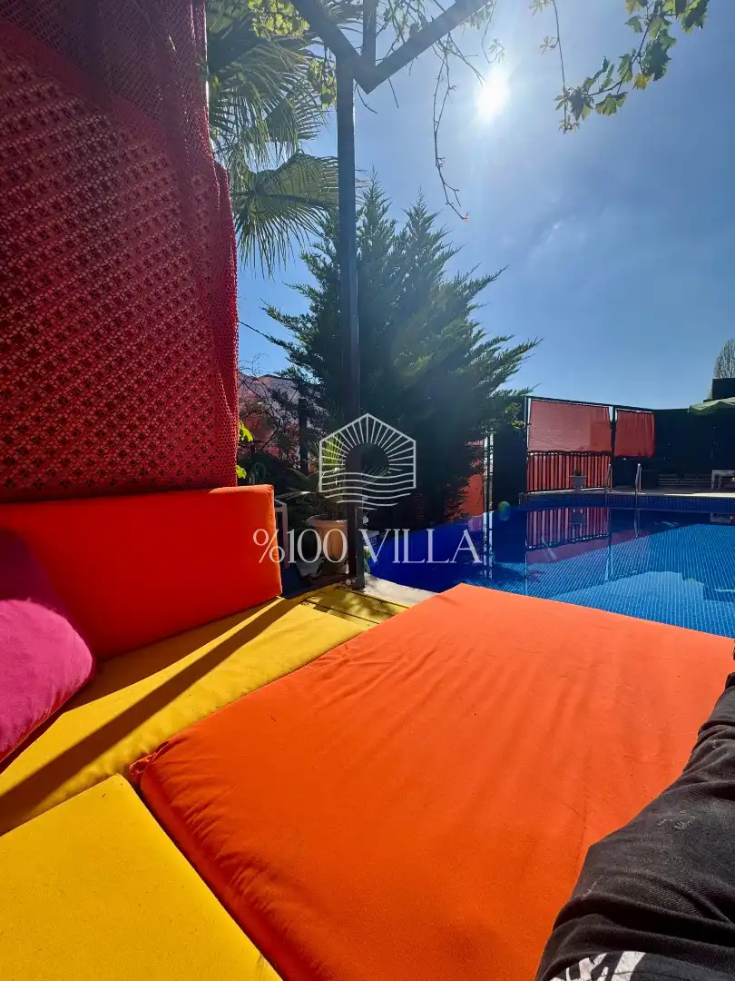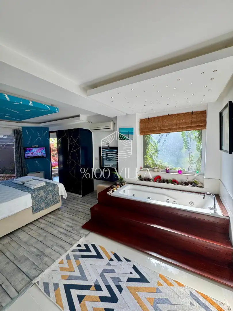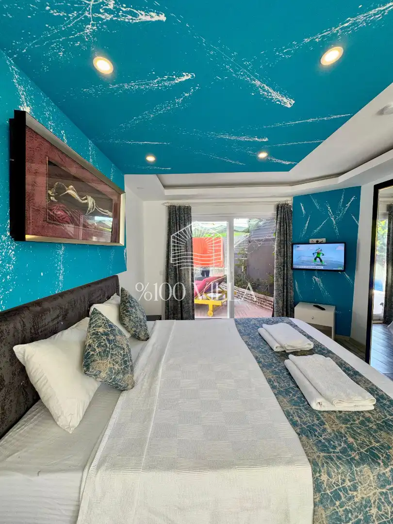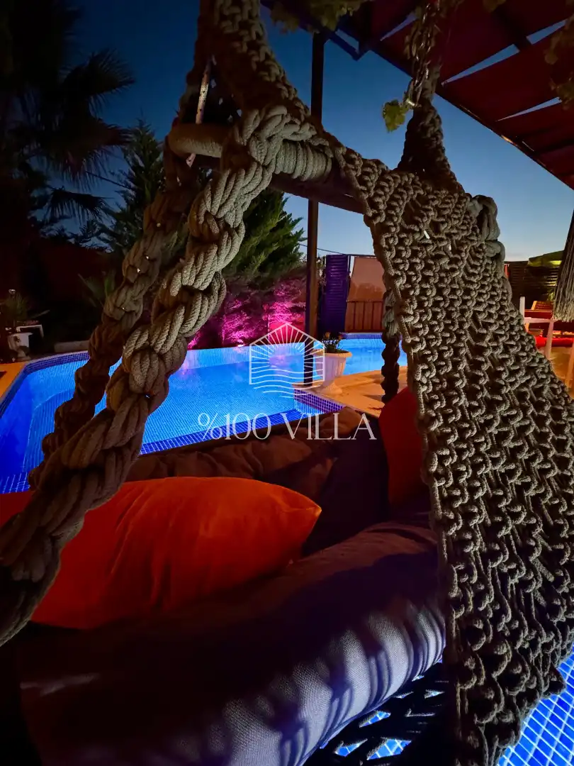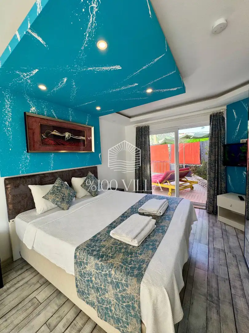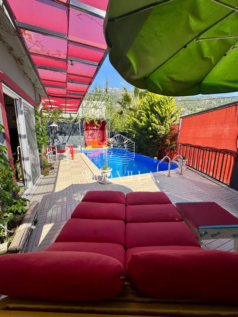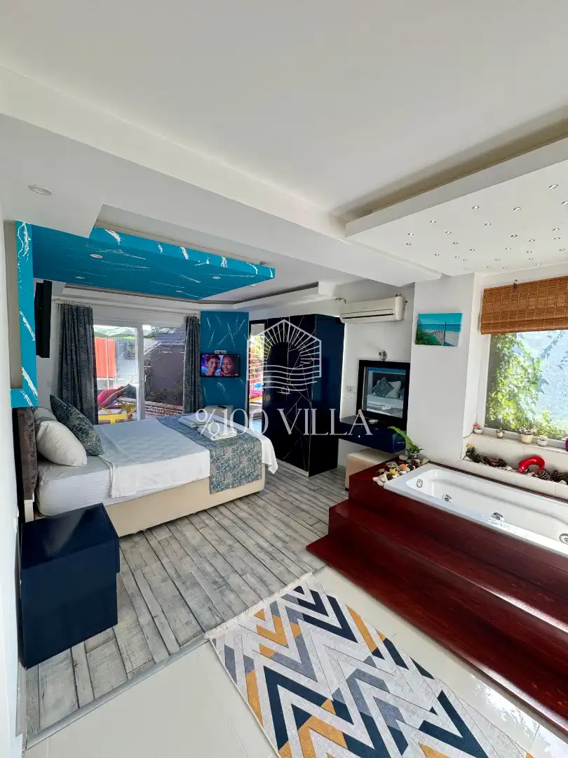 Villa Renk, Kalkan merkeze 7 km uzaklıkta olup İslamlar Köyü’nde doğa ile iç içe konumlanmıştır. Eşsiz doğası ve temiz havası 2 kişilik çok özel bir villadır. Renkli bir tasarıma sahip evimizin bahçe şemsiyelerle dekore edilmiştir. Özellikle balayı misafirlerimizin ilgisini çekecek villamızın yatak odası içerisinde jakuzi de yer almaktadır. İslamlar bölgesinin yüksek konumda bulunmasıyla temiz havanın ve eşsiz doğa manzarasının tadını çıkarabileceğiniz harika bir tatil sizleri bekliyor.