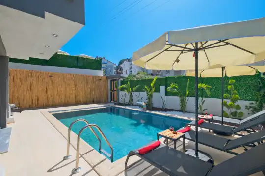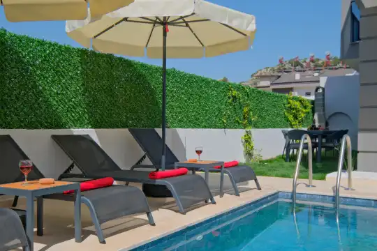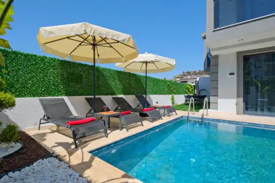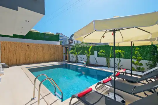 Dış Mekân: Özel yüzme havuzu, şezlong takımı, oturma grubu ve barbekü alanı