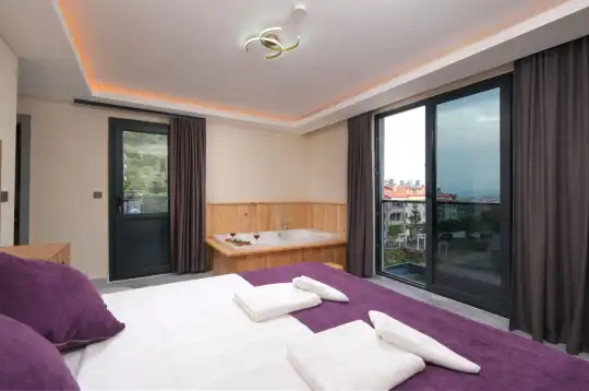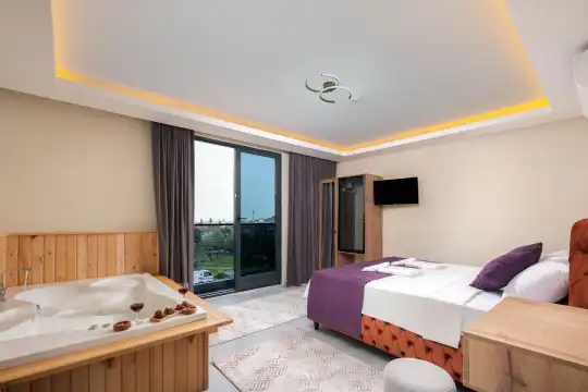 - 1. Yatak Odası: Çift kişilik yatak, jakuzi ve özel banyo
