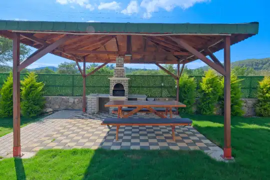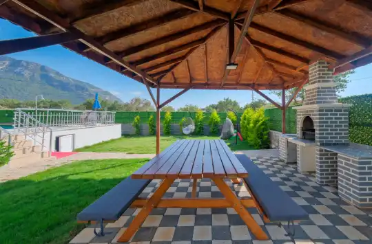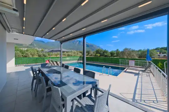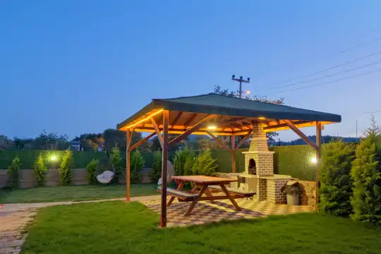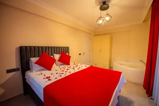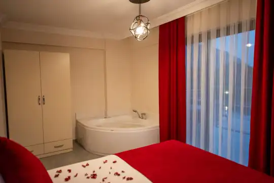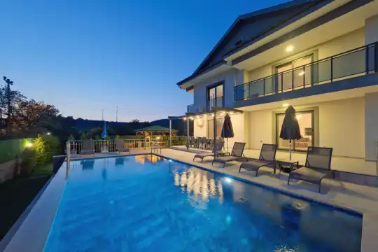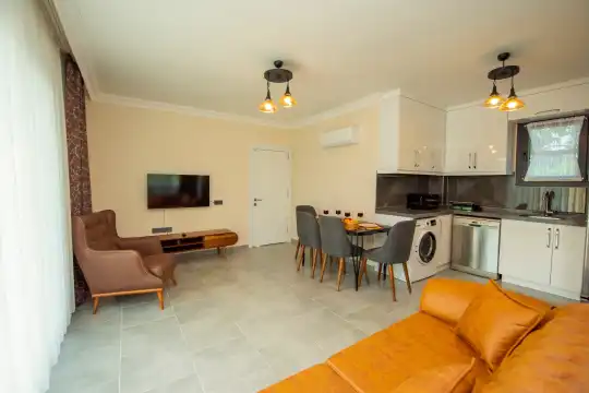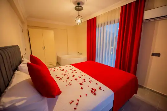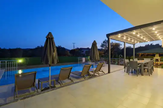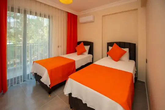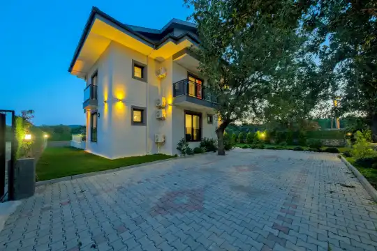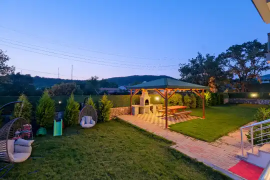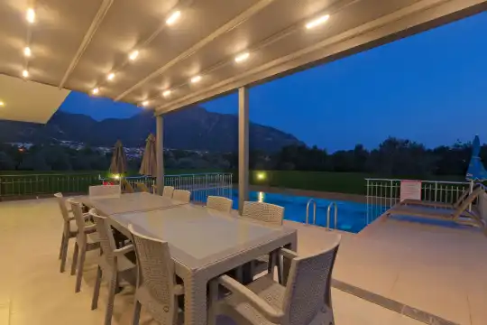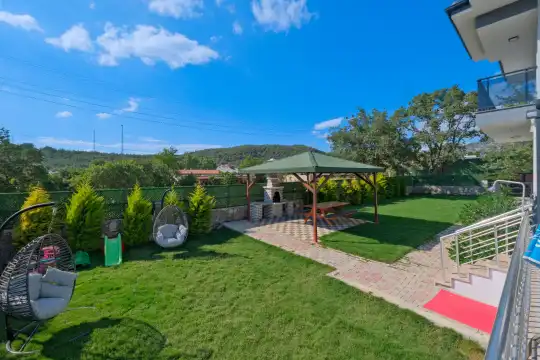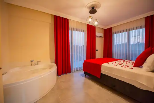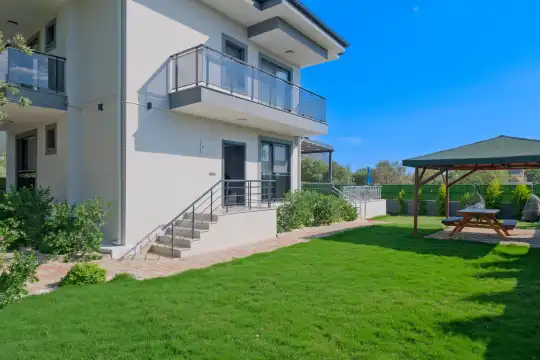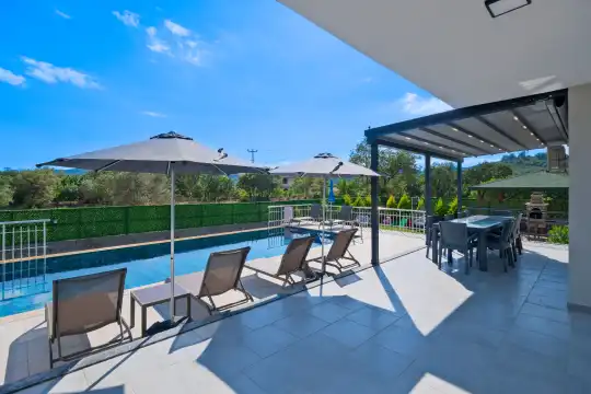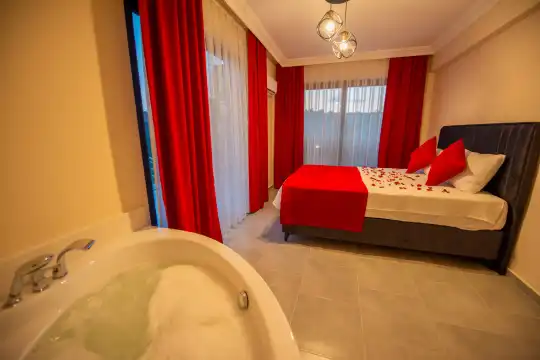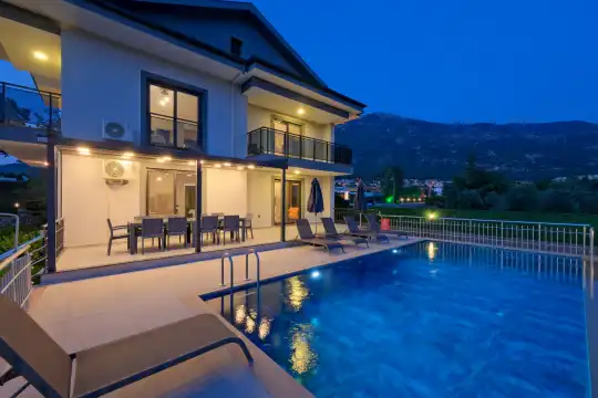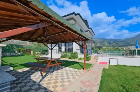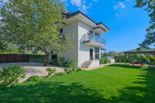 Geniş bahçesi, çocuklu aileler için konforlu bir ortam sunmaktadır. Villa, Fethiye merkezine, ünlü Ölüdeniz Plajı’na ve diğer turistik noktalara yakın konumuyla huzurlu bir tatil vadediyor. Bahçe alanı, ihtiyaçlarınızı düşünerek tasarlanmış geniş bir havuz terasına sahiptir. Havuz bahçesinde, yeterli sayıda şezlong, rahat oturma grubu ve barbekü alanı bulunmaktadır.
