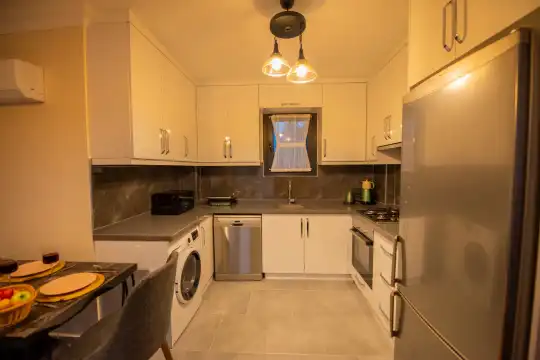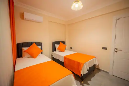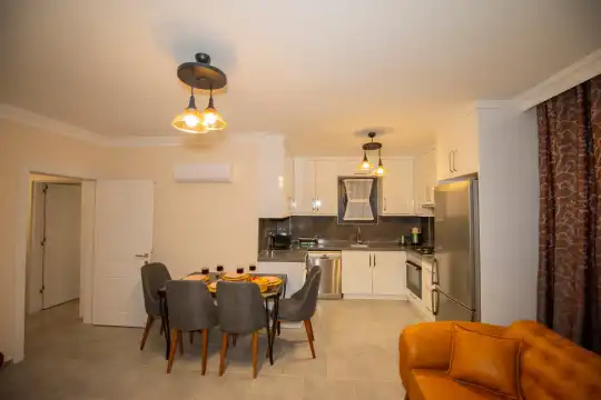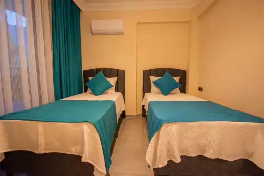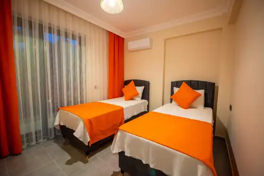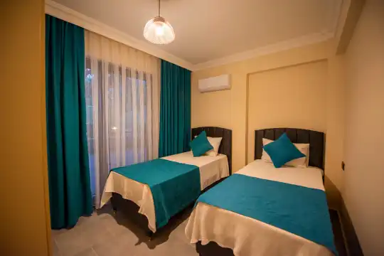Havuz alanına açılan ferah oturma odası, tam donanımlı açık mutfak ile tatil konforunuzu artıracak şekilde düzenlenmiştir. İki yatak odasında çift kişilik yatak, ebeveyn banyosu ve jakuzi; diğer iki yatak odasında ise iki tek kişilik yatak bulunmaktadır.