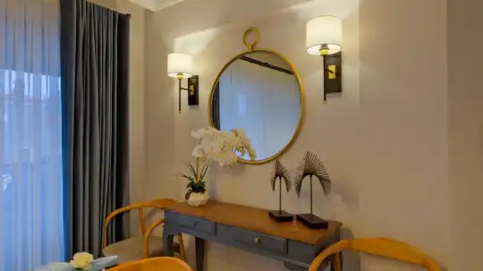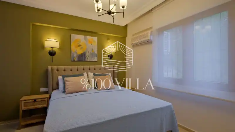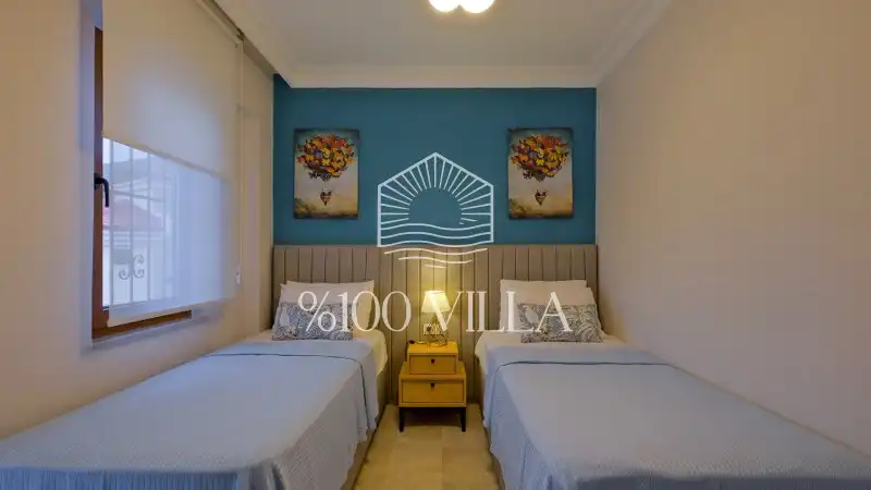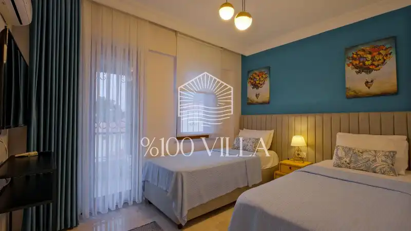 Villa Serenity, 6 kişilik kapasiteye sahip villada 3 yatak odası yer alıyor. Villanın bir odasında ebeveyn banyosu ve ortak alanda 2 banyosu daha bulunmaktadır. Havuz başında salıncak mevcuttur. Açık mutfağı ve kendine ait bahçesi var. Mutfağında bulaşık makinesi, buzdolabı, ankastre fırın, ve mutfakta ihtiyaç olan hemen hemen bütün gereçler bulunuyor. Barbekü, masa, sandalyeler, şezlonglar ve şemsiyeler bahçe keyfini sınırsız yaşamanıza imkan tanıyor. Salonunda oturma grubu, televizyon, eşyalar bulunurken, tüm odalar için ayrı klima ve televizyon imkanı vardır.
