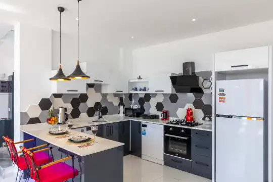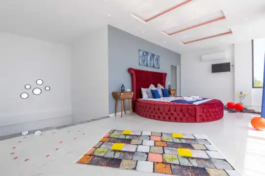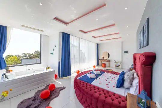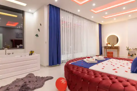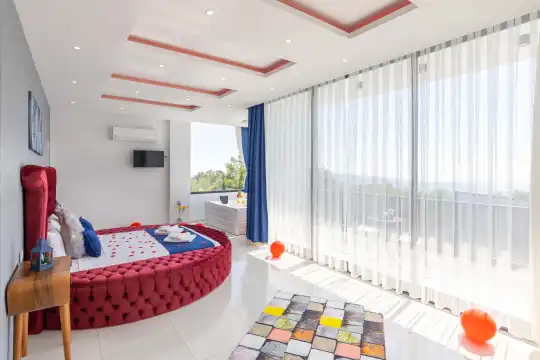 Villamız Kaş/Kalkan tatil beldesinin sakin konumlarından Üzümlü mevkiinde yer almaktadır. Son yılların villa tatili gözdesi olmuş, etrafı ormanlarla çevrili, merkeze araçla 5 dakikada ulaşabildiğiniz konumu ve muhteşem mazarasıyla konaklayanlarına lüks bir tatil imkanı sağlamaktadır. Villa Sisters, 2 kişilik kapasiteye sahip villada 1 yatak odası yer alıyor. Villanın yatak odasında banyosu ve jakuzisi mevcut. Açık mutfağı ve kendine ait bahçesi var. Mutfağında bulaşık makinesi, buzdolabı, ankastre fırın, ve mutfakta ihtiyaç olan hemen hemen bütün gereçler bulunuyor. Villanın bahçesinde özel havuzu mevcut. Barbekü, masa, sandalyeler, şezlonglar ve şemsiyeler bahçe keyfini sınırsız yaşamanıza imkan tanıyor. Salonunda oturma grubu, televizyon, eşyalar bulunurken, tüm odalar için ayrı klima imkanı var.