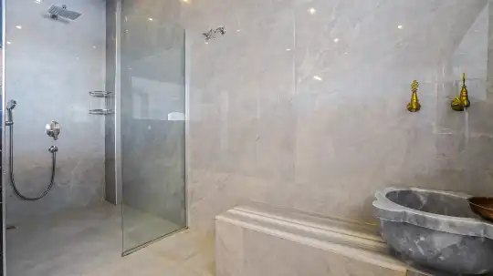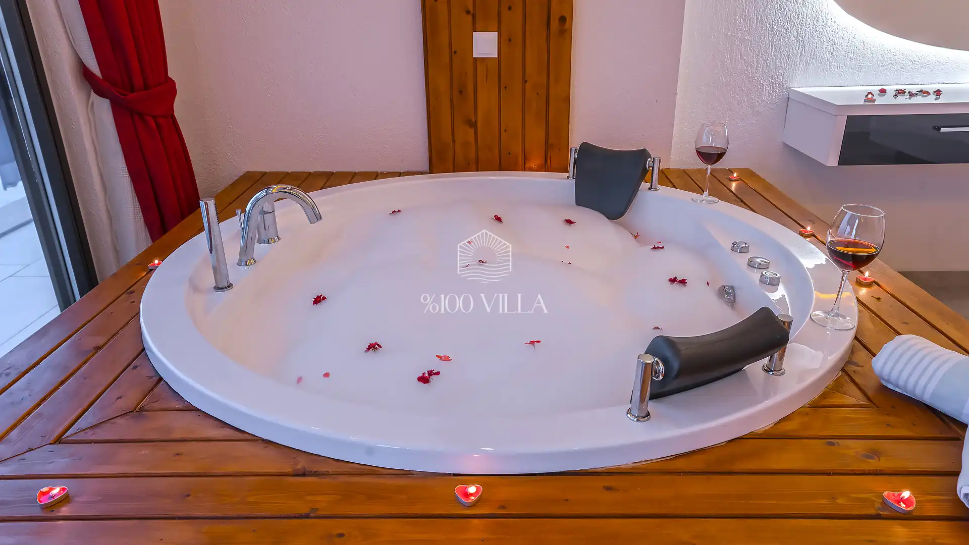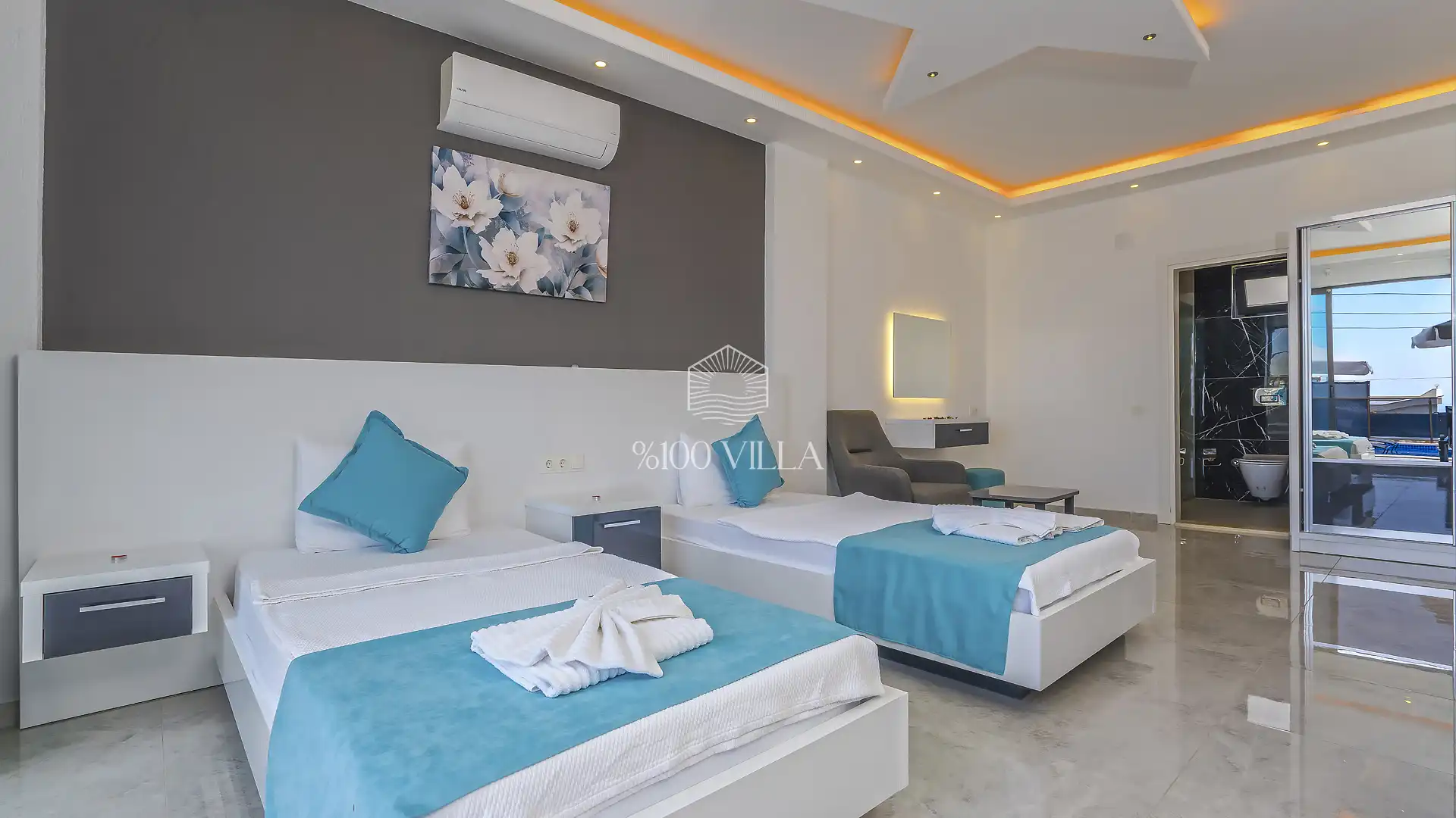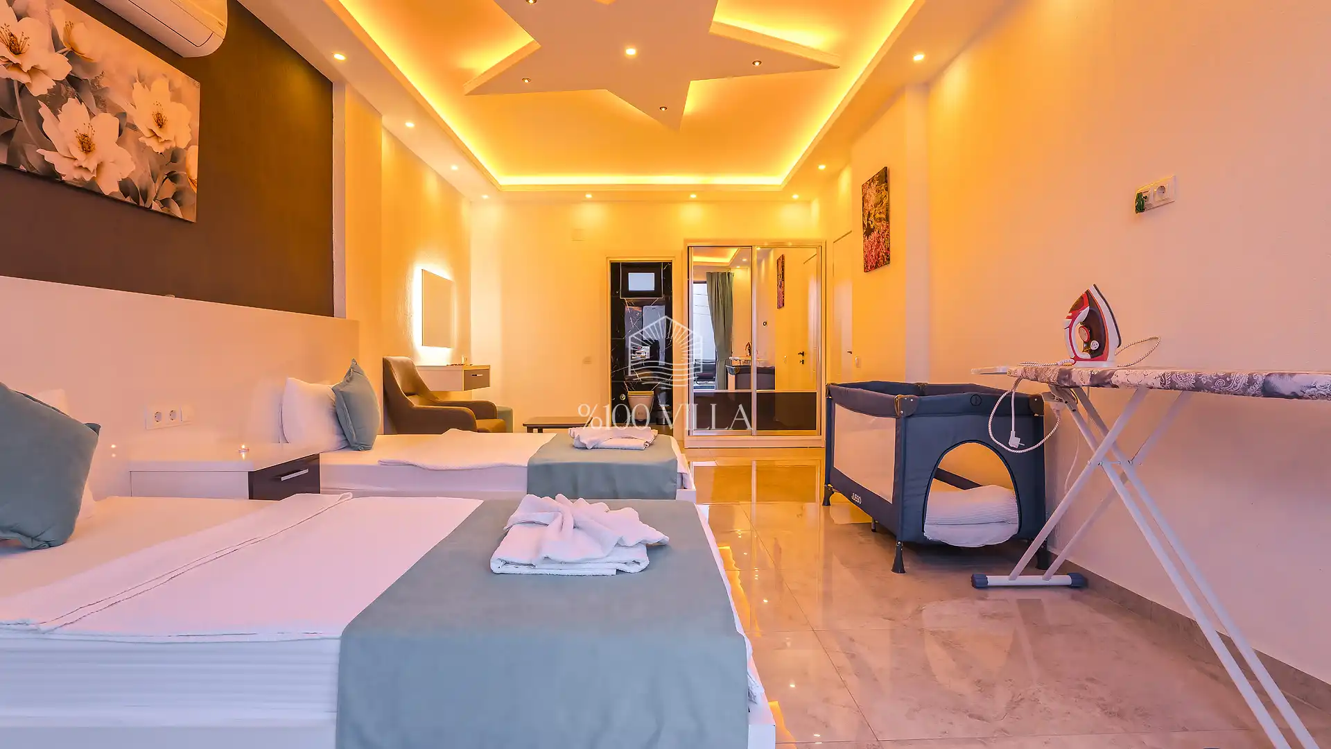Villamız, 2 yatak odası ve 2 banyosuyla, sevdiklerinizle mahremiyetinizi koruyarak tatil yapmanıza olanak sağlıyor.