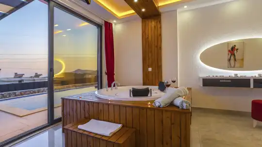 Özel yüzme havuzu, jakuzi ve sauna ile lüks spa deneyimini evinize getiriyoruz. Geniş terasımızda barbekü keyfi yapabilir, salıncakta dinlenebilir veya şezlonglarda güneşin tadını çıkarabilirsiniz.