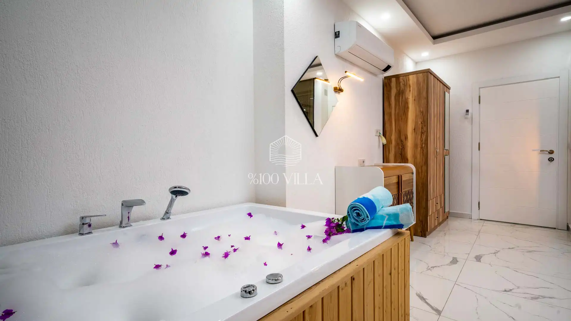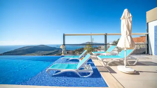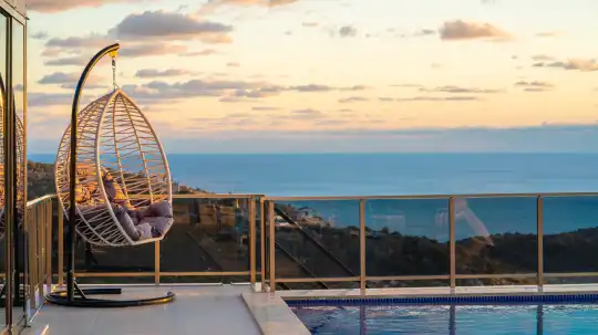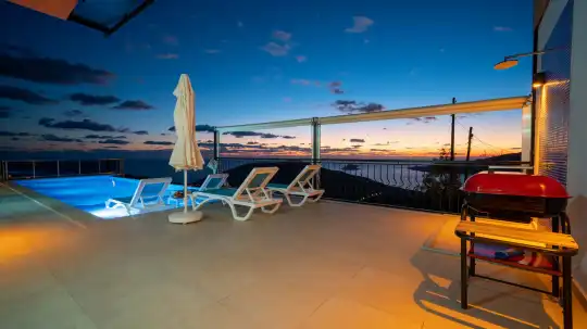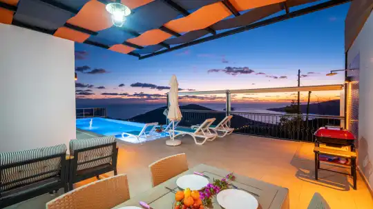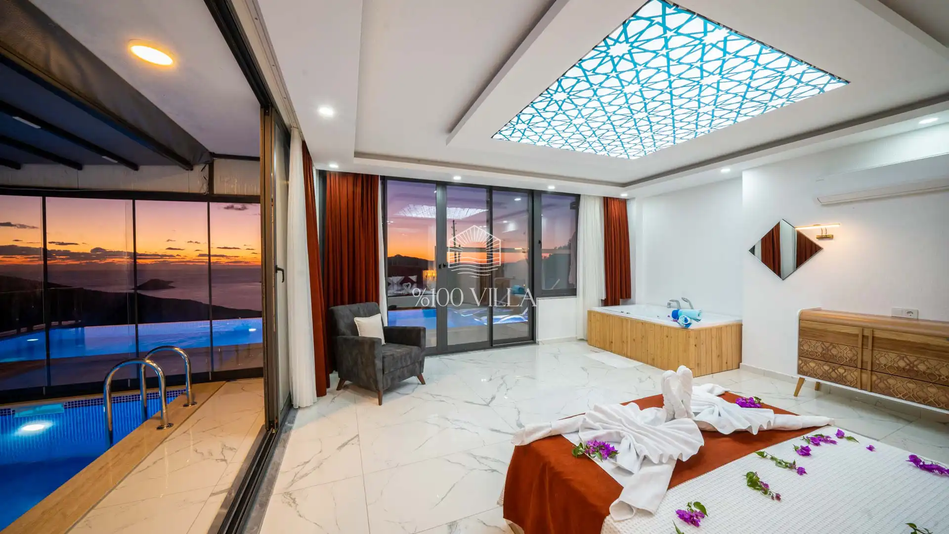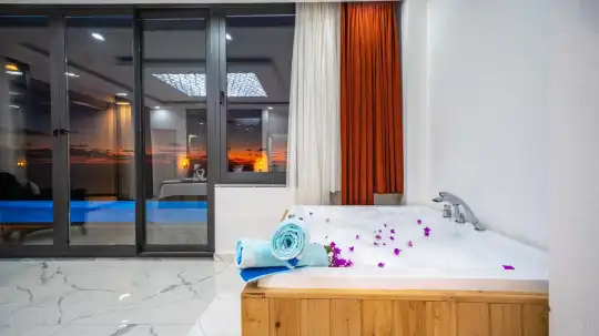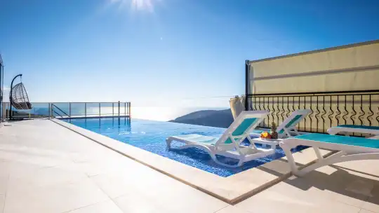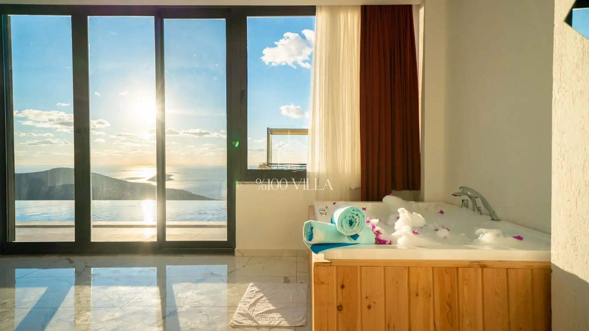 Muhteşem bir deniz manzarasına sahip olan villamız havuz terasının korunaklı yapısından dolayı muhafazakar aileler ve balayı çiftleri için oldukça idealdir. Sevdiklerinizle birlikte günbatımına karşı içeceklerinizi yudumlayıp manzaranın tadını çıkarabilirsiniz. Villamızda bulunan jakuzi ise rahatlayıp tüm yılın yorgunluğunu üzerinizden atmanıza yardımcı olacaktır.