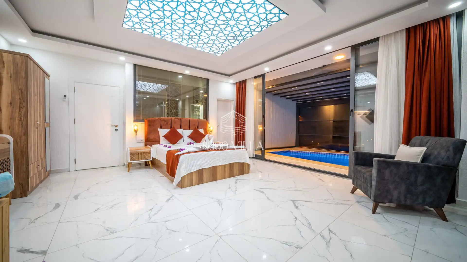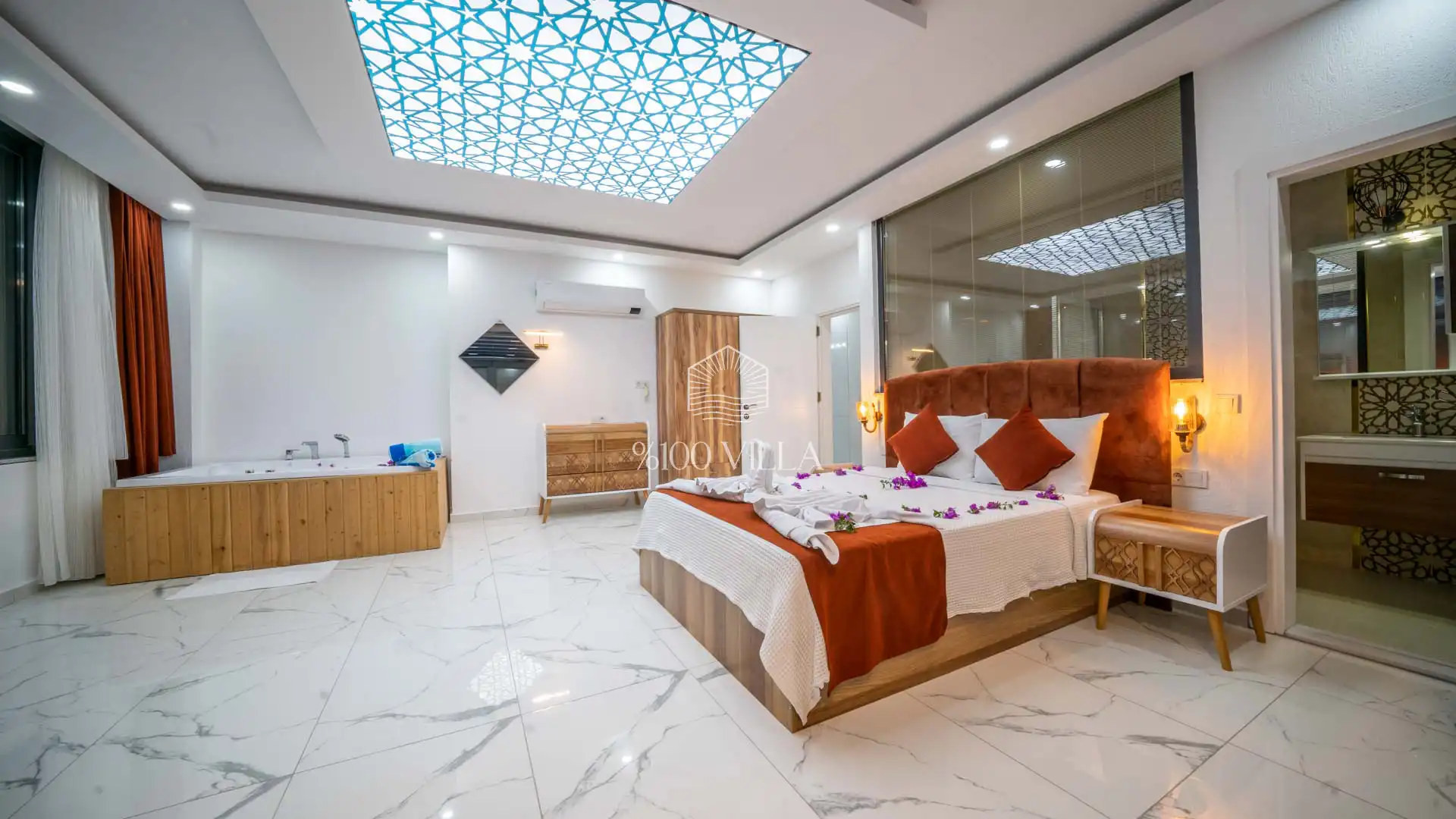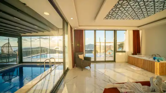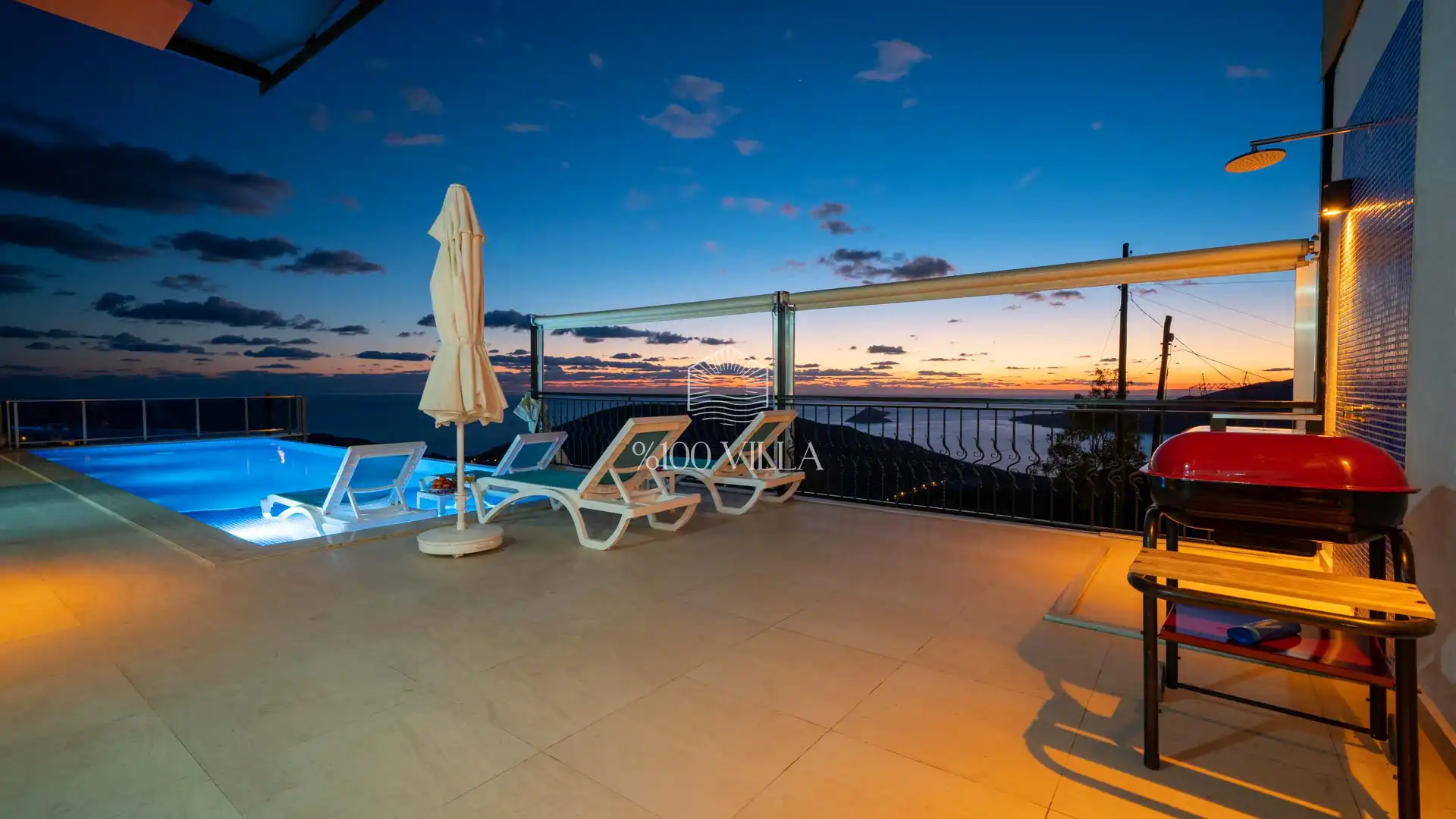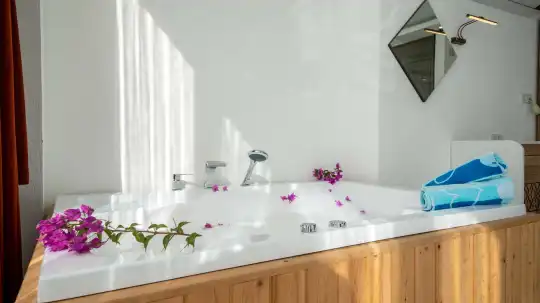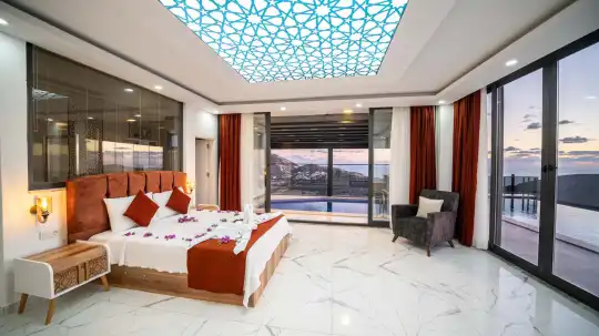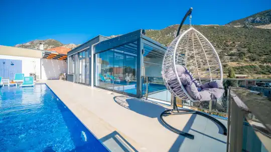 Muhteşem bir deniz manzarasına sahip olan villamız havuz terasının korunaklı yapısından dolayı muhafazakar aileler ve balayı çiftleri için oldukça idealdir. Sevdiklerinizle birlikte günbatımına karşı içeceklerinizi yudumlayıp manzaranın tadını çıkarabilirsiniz. Villamızda bulunan jakuzi ise rahatlayıp tüm yılın yorgunluğunu üzerinizden atmanıza yardımcı olacaktır.