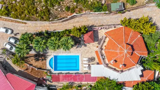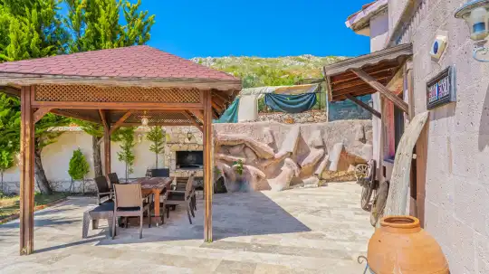 Villa, Kalkan merkezine sadece 15-20 dakika mesafede olup, hem doğanın içinde huzurlu bir konaklama sunar hem de restoranlar, plajlar ve alışveriş noktalarına kolay erişim imkanı sağlar.
