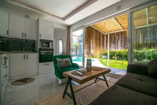 Muğla Dalyan mevkiinde konumlanan şirin bahçeli villamızdır. Toplam 1 yatak odasından oluşmuş, 2 kişi konaklama kapasitesine sahiptir.. Balayı çiftleri için oldukça idealdir. Oldukça şık ve modern bir şekilde döşenmiş olan villamızda misafirlerimiz için her şey düşünülmüştür. Havuz terasında bulunan şezlonglarda güneşlenebilir, bahçe masasında muhteşem yemekler yiyebilir, salıncakta sallanıp keyifli dakikalar geçirebilirsiniz.İztuzu plajı ile Dalyan arasındaki uzaklık 13 kilometre olup, merkezden kalkan tekne, dolmuş veya araç ile ulaşım sağlanmaktadır.