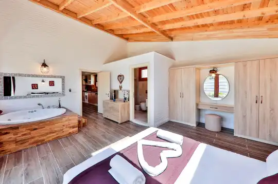 Villa Sunset 3, Kalkan’ın en güzel muhitlerinden biri olan İslamlar mahallesinde konumlu bulunmaktadır. Yemyeşil ağaçların arasında muhteşem doğa manzarasıyla öne çıkan villa, misafirlerine doğanın tadını çıkarabilme imkanı sunmaktadır. Villa Sunset 3, 2019 yılı yapımı, tek katlı ve ahşap yapıdadır. Villamız 1 oda ve 2 kişi konaklama kapasitesine sahiptir. Balayı çiftleri için özenle hazırlanmış, korunaklı havuzlu muhafazakar konseptte bir villadır. Misafirlerinin her türlü konfor ihtiyacı düşünülerek hayata geçirilen villamızda konuklarımızı doğal yaşam içerisinde rüya gibi bir villa tatili bekliyor.