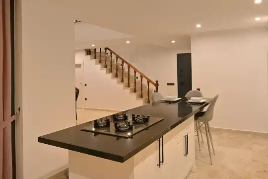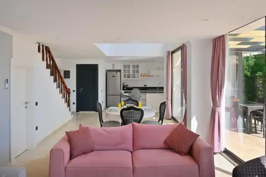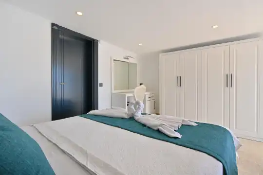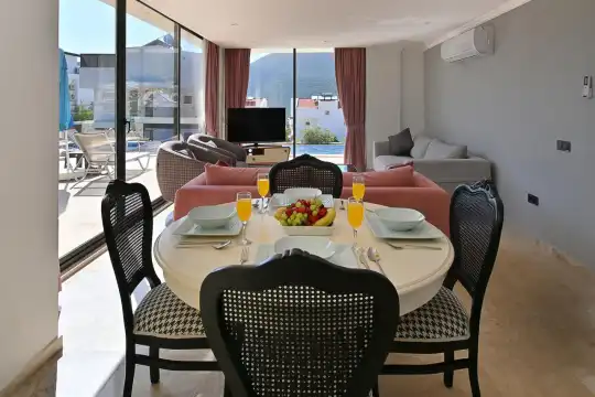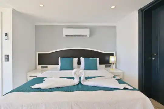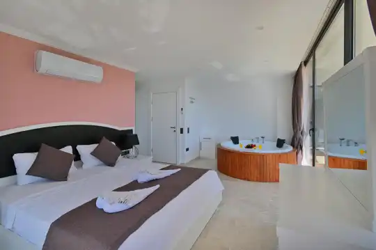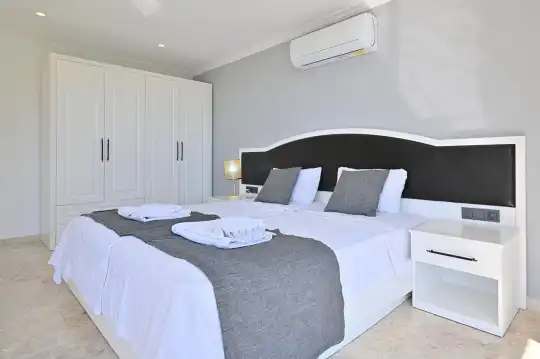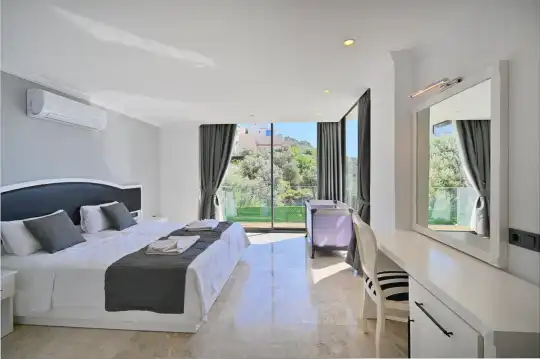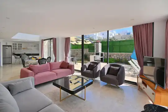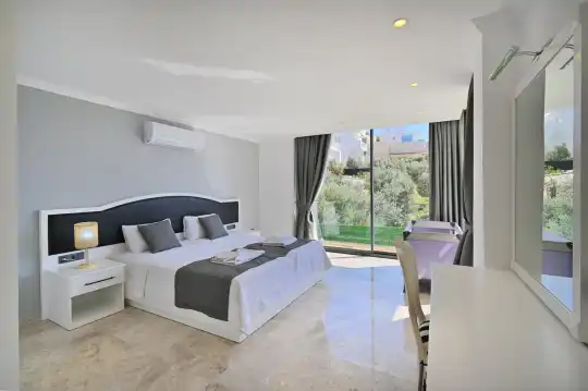 Toplam 3 yatak odasından oluşmuş, 6 kişi konaklama kapasitesine sahiptir. Geniş aileler ve kalabalık arkadaş grupları için oldukça idealdir. Oldukça şık ve modern bir şekilde döşenmiş olan villamızda misafirlerimiz için her şey düşünülmüştür. Havuz terasında bulunan şezlonglarda güneşlenebilir, bahçe masasında muhteşem yemekler yiyebilir, salıncakta sallanıp keyifli dakikalar geçirebilirsiniz.