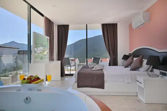 Villamız Antalya’nın gözde tatil beldesi haline gelmiş Kaş/Kalkan’ın panoramik manzarasıyla bilinen Kalamar mevkiinde bulunmaktadır. Turuncu ve kırmızının hiç görmediğiniz tonlarına hakim bir günbatımına ve bakmaya doyamayacağınız deniz ve doğa manzarasına hakimdir. Dört tarafı çam ormanlarıyla kaplı sessiz sakin bir konumda olup, kargaşayı arkasında bırakıp huzur arayanlar için benzersiz lüks bir villa deneyimi sunmaktadır.