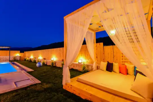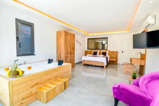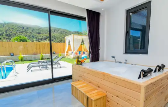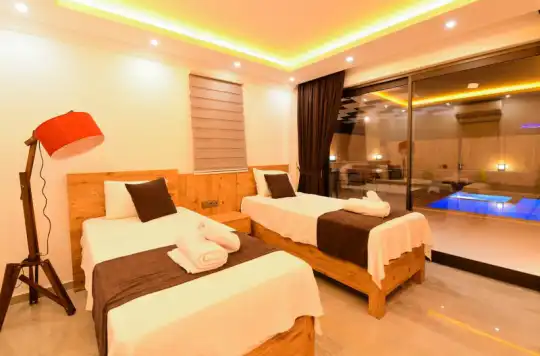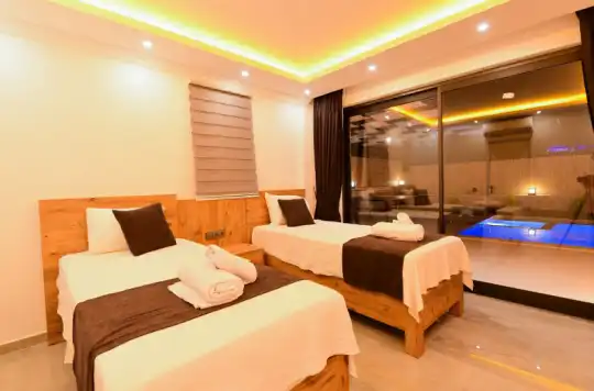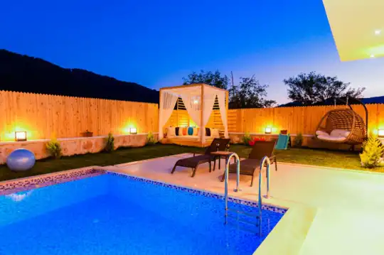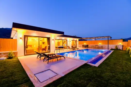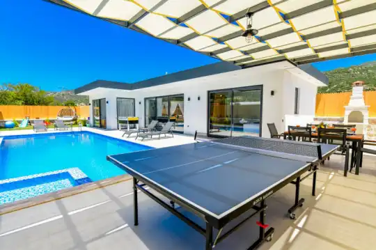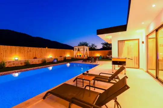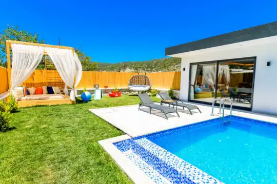 Villa Terasa, Kalkan Saribelen Bölgesinde, 2 yatak odali ve 4 kisi kapasitelidir. Villamiz geniş bahçe ve havuz alanına sahip olup korunakli özel, çocuk havuzludur. Ana yatak odasinda jakuzi bulunan villamiz oldukça konforlu ve modern dizayn edilmiştir. Villamizin havuzu korunakli olup, bahçe alanında çocuk oyun alani ve langirt bulunmaktadir. İhtiyacınız olan her şeyin en ince ayrıntısına kadar düşünüldüğü Villa Terasa'da size sadece sevdiklerinizle tatilin tadını çıkarmak kalıyor.