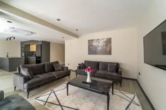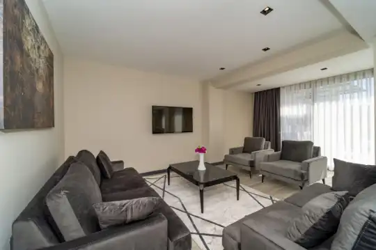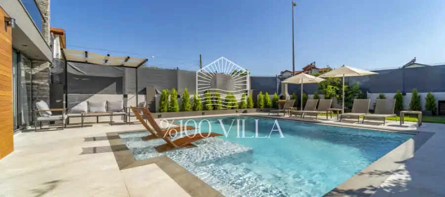 Merkezi konumu sayesinde tercihlerin başında gelen villa, oldukça ferah ve geniş bahçe alanında kapasiteye uygun şezlong takımı, oturma grubu, salıncak ve barbekü alanına sahiptir.