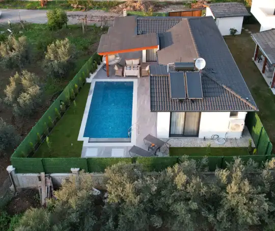 Villa Truva, geniş ve ferah yaşam alanları, doğa ile iç içe konumu ve modern tasarımıyla unutulmaz bir tatil deneyimi sunar. Hem huzur hem de konfor arayan misafirler için ideal bir tercihtir.