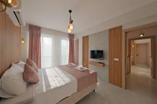 Doğa ile iç içe konumlanan villada, misafirlerin rahatça dinlenebileceği oturma alanı, şezlong takımı ve barbekü alanı bulunmaktadır. Havuz terasına açılan ferah oturma odası, modern bir şekilde döşenmiş mutfak ile birlikte konforlu bir yaşam alanı sunar. İki yatak odasında çift kişilik yatak ve ebeveyn banyosu mevcutken; üçüncü ve dördüncü yatak odalarında iki tek kişilik yatak ve ebeveyn banyosu bulunmaktadır. Bu düzenleme, konukların ihtiyaçlarına yönelik rahat bir ortam sağlamaktadır.