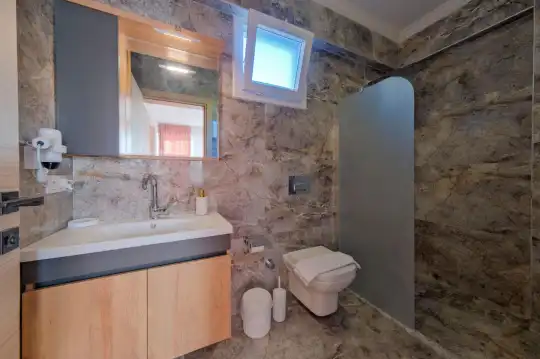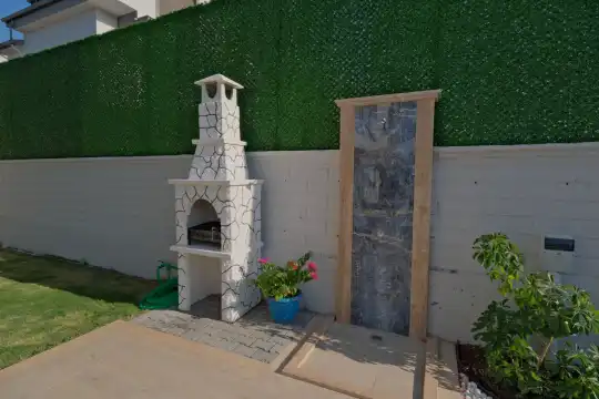 Doğa ile iç içe konumlanan villada, misafirlerin rahatça dinlenebileceği oturma alanı, şezlong takımı ve barbekü alanı bulunmaktadır. Havuz terasına açılan ferah oturma odası, modern bir şekilde döşenmiş mutfak ile birlikte konforlu bir yaşam alanı sunar. İki yatak odasında çift kişilik yatak ve ebeveyn banyosu mevcutken; üçüncü ve dördüncü yatak odalarında iki tek kişilik yatak ve ebeveyn banyosu bulunmaktadır. Bu düzenleme, konukların ihtiyaçlarına yönelik rahat bir ortam sağlamaktadır.