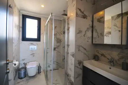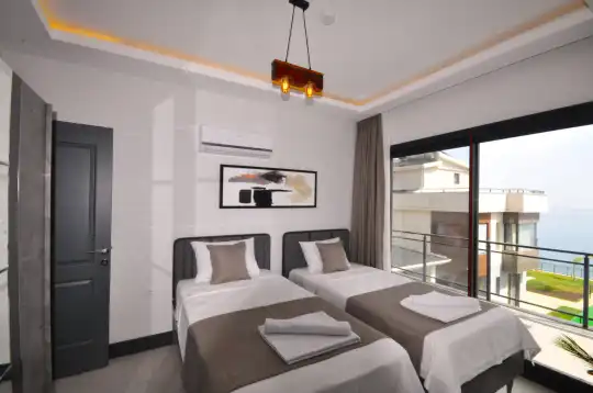 - Dördüncü yatak odası: Çift kişilik yatak , sauna, hamam, jakuzi ve deniz manzaralı teras ile özel bir konfor alanı sunar.