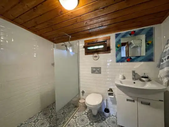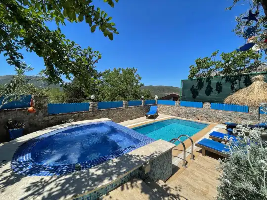 Villa Uğur, Fethiye Kayaköy mevkiinde konumlanan ve doğa içerisinde yer alan özel havuzu tam korunaklı villamızdır. Modern ve konforlu mimariye sahip olan villamızın içerisine hem taş, hem ahşap dokunuşlar ön planda tutulmaktadır. Yemyeşil doğa içerisinde yer alan villamız maksimum 4 kişilik olup, 2 adet yatak odasına sahiptir. Birinci yatak odasında 1 adet çift kişilik yatak ebeveyn banyosu ve klima yer alırken, ikinci yatak odasında 1 adet tek kişilik yatak, 1 adet çift kişilik yatak ve klima mevcuttur.