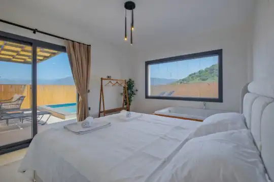 Fethiye'de merkezi konumuyla hizmet veren villamız 2 yatak odasıyla 4 kişilik konaklama kapasitesi sunmaktadır. Çekirdek aileler ve balayı çiftleri tarafından tercih edilen villanın havuz alanı korunaklı bir yapıya sahiptir.