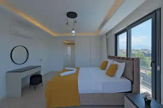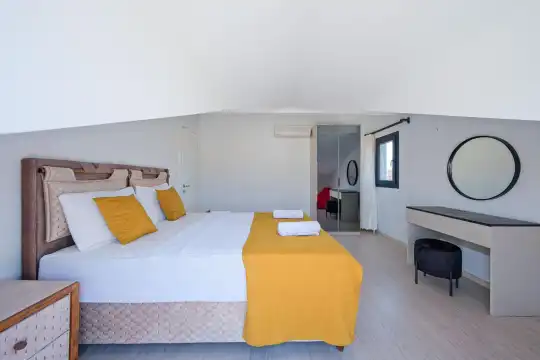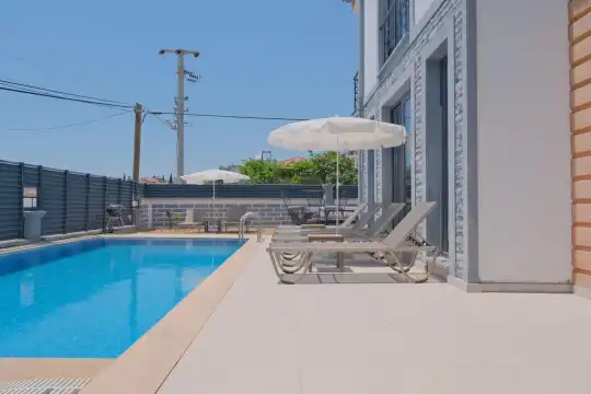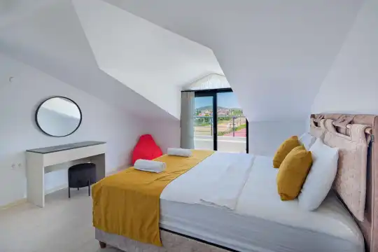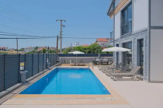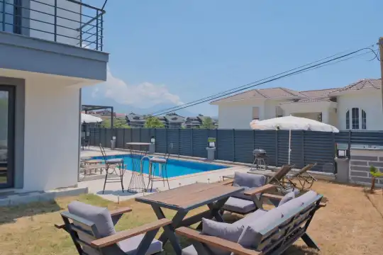 Fethiye, Çiftlik mevkiindeki bu villa, 5 yatak odasıyla 10 kişilik konaklama kapasitesine sahip ve denize yakın konumu sayesinde kalabalık aileler ve arkadaş grupları için mükemmel bir seçenek.