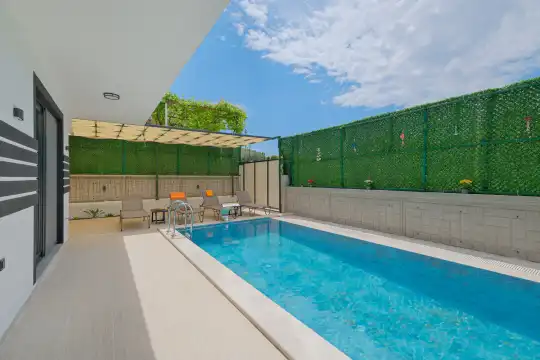 Doğayla iç içe huzurlu bir konumda yer alan villa, modern ve konforlu tasarımıyla misafirlerine keyifli bir konaklama deneyimi sunar.