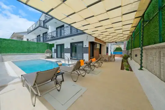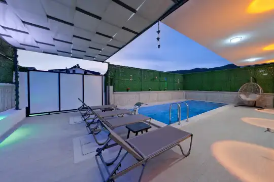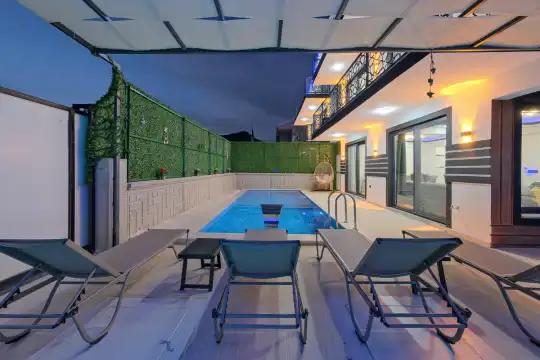 Geniş yaşam alanları, tam donanımlı mutfağı, özel yüzme havuzu ve dinlenme alanları ile hem dinlenmek hem de eğlenmek isteyen misafirler için uygundur. Şehir merkezine ve denize kolay ulaşım imkânı sunan konumu sayesinde, hem sakinlik hem de Fethiye'nin sunduğu sosyal olanaklara kolay erişim sağlar.