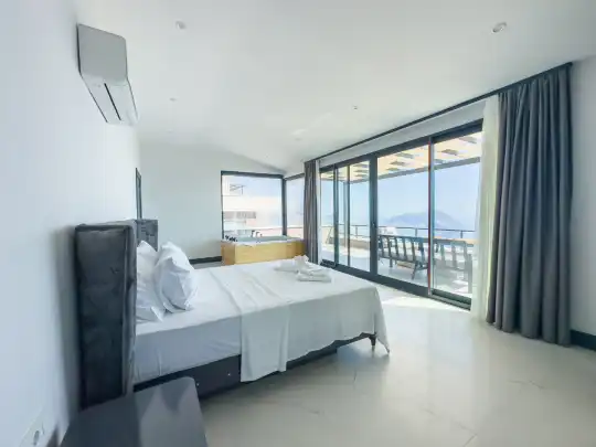 - Dördüncü yatak odası: Çift kişilik yatak , sauna, hamam, jakuzi ve deniz manzaralı teras ile özel bir konfor alanı sunar.