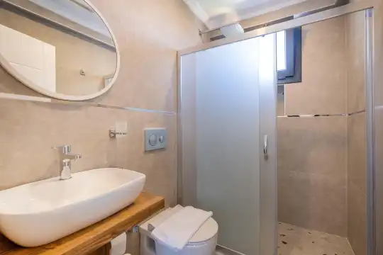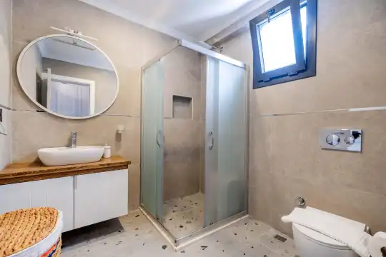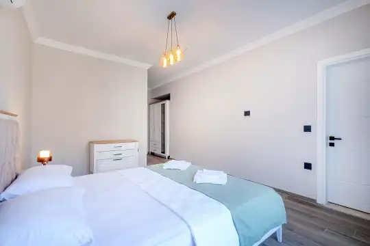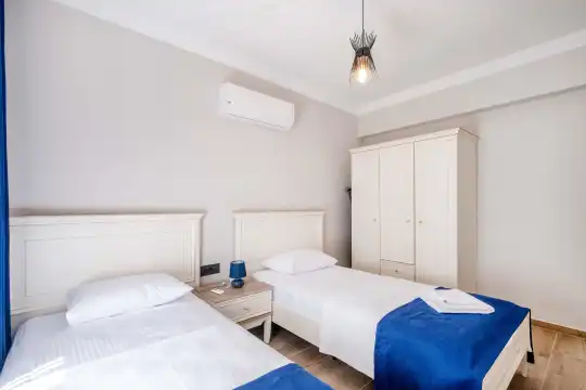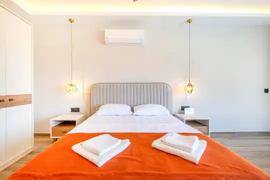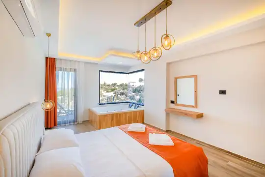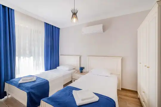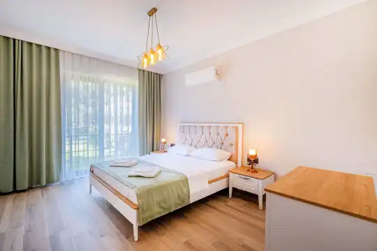 Toplam 3 yatak odasından oluşmuş, 6 kişi konaklama kapasitesine sahiptir. Geniş aileler ve kalabalık arkadaş grupları için oldukça idealdir. Oldukça şık ve modern bir şekilde döşenmiş olan villamızda misafirlerimiz için herşey düşünülmüştür. Havuz terasında bulunan şezlonglarda güneşlenebilir, bahçe masasında muhteşem yemekler yiyebilir, salıncakta sallanıp keyifli dakikalar geçirebilirsiniz.