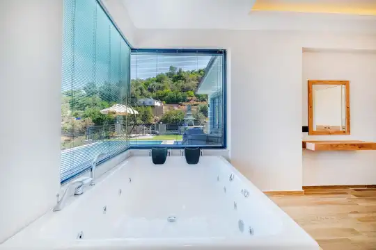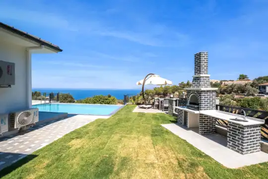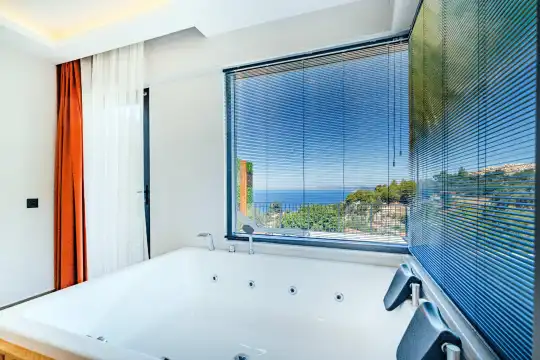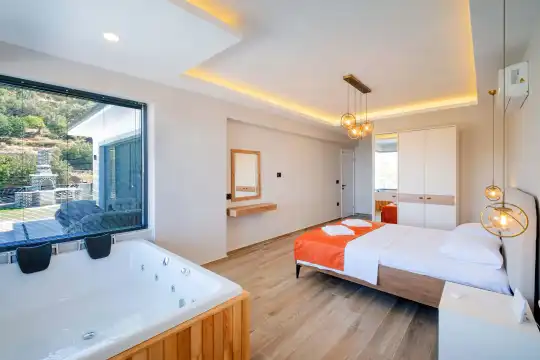Muhteşem bir deniz manzarasına sahip olan villamız havuz terasının korunaklı yapısından dolayı ve balayı çiftleri için oldukça idealdir. Sevdiklerinizle birlikte günbatımına karşı içeceklerinizi yudumlayıp manzaranın tadını çıkarabilirsiniz. Villamızda bulunan jakuzi ise rahatlayıp tüm yılın yorgunluğunu üzerinizden atmanıza yardımcı olacaktır.