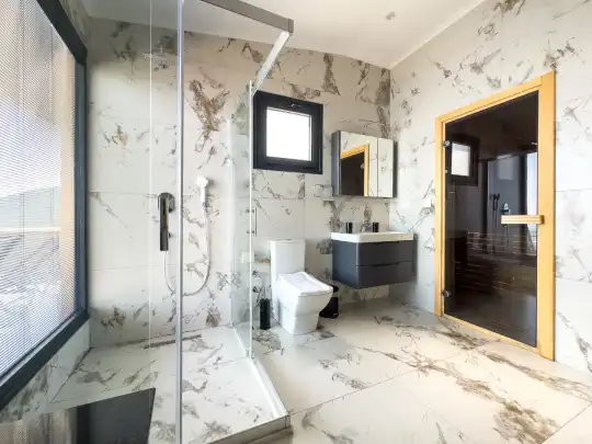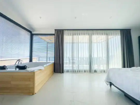 • Dördüncü yatak odası: Çift kişilik yatak , sauna, hamam, jakuzi ve deniz manzaralı teras ile özel bir konfor alanı sunar.